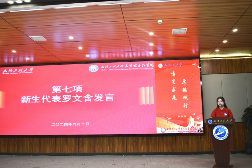 2024级硕士研究生罗文含作为新生代表讲话。。。。。。。。“选择继续攻读研究生是一个主要决议,,,,,应珍惜机会,,,,,起劲实现人生目的,,,,,成为有理想、有本事、有继续的新时代青年。。。。。。。。”她展望了研究生生涯远景,,,,,面向新篇章,,,,,她招呼同砚们要信马行马,,,,,争做马克思主义的坚定信仰者、有力践行者,,,,,起劲实现人生价值。。。。。。。。