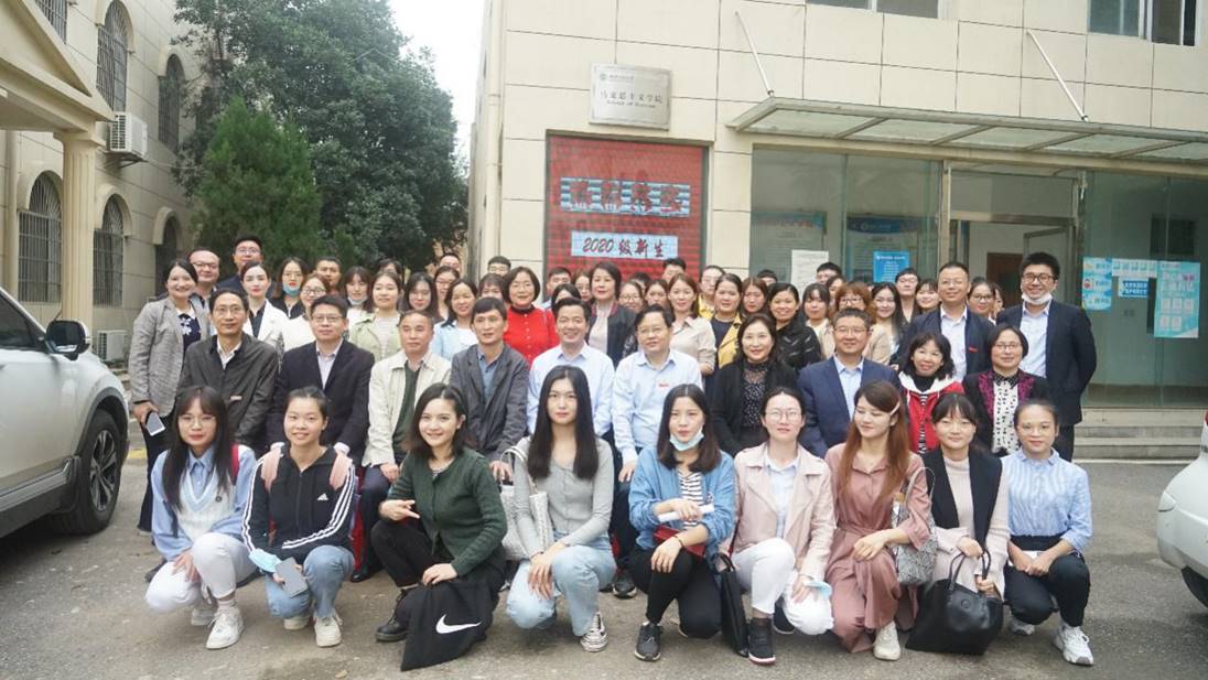 随后,,,,,导师代表操菊华先生作了生动形象的讲话。。。。。。。。她建议各人背上三个行囊继续出发,,,,,一是自信的行囊,,,,,对马科学、马院、导师充满自信;;;;;二是研究的行囊,,,,,勤念书、勤提问、勤练笔;;;;;三是初心的行囊,,,,,做到不忘初心方得始终。。。。。。。。